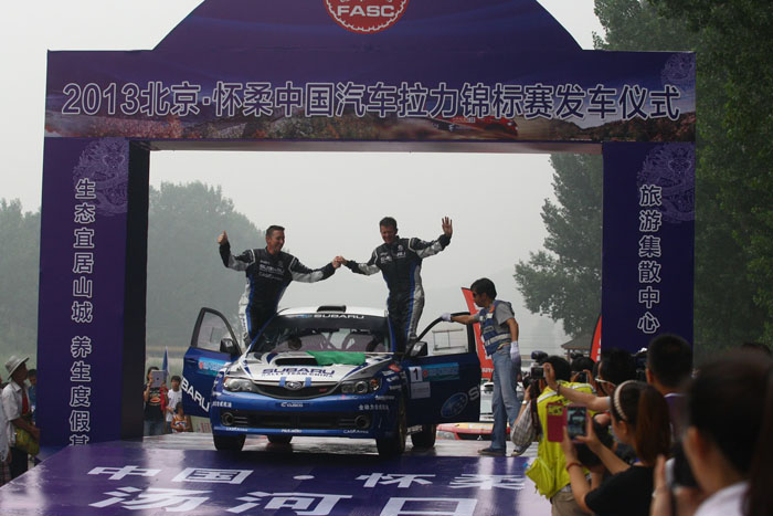 2013北京懷柔中國(guó)汽車?yán)﹀\標(biāo)賽(CRC)將于8月16日正式拉開(kāi)序幕,斯巴魯中國(guó)拉力車隊(duì)主力車手李微(領(lǐng)航員/姜偉濤)奪得國(guó)內(nèi)車手的最快成績(jī),時(shí)間為2分55秒5(跑三圈)。排在國(guó)內(nèi)第二、第三位的分別是韓寒(領(lǐng)航員/孫強(qiáng))和孫超(領(lǐng)航員/肖松)。傅軍飛(領(lǐng)航員/陳毅平)則排在國(guó)內(nèi)車手第七名的位置。