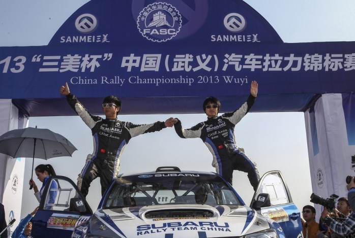 11月22日,2013年“三美”杯武義?中國汽車?yán)﹀\標(biāo)賽(CRC)舉行了盛大的開幕式,并進(jìn)行了超級(jí)短道賽的激烈角逐,斯巴魯中國拉力車隊(duì)的馬克·希金斯/普格·菲利皮以1分47秒7的最快成績名列第一,韓寒/孫強(qiáng)車組與李微/姜偉濤車組也一舉挺進(jìn)前五名的位置。